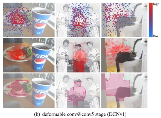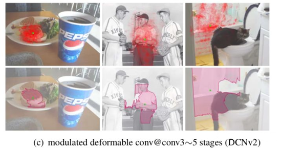 总的来说,DCNv1中引入的偏移量是要寻找有效信息的区域位置,DCN v2中引入权重系数是要给找到的这个位置赋予权重,这两方面保证了有效信息的准确提取。
