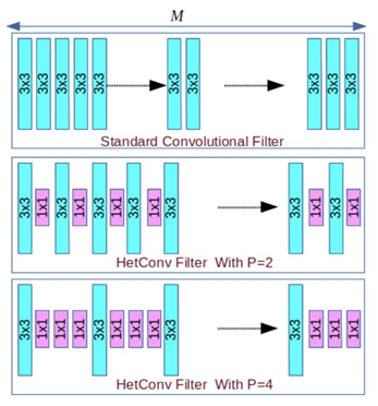 HetConv 是在2019年CVPR提出的一种新的高效卷积方式,它在CIFAR10、ImageNet等数据集超过了标准卷积以及DW+PW的高效卷积组合形式,取得了更高的分类性能。HetConv 主要侧重于设计新的卷积核,传统的卷积和按文中说法称为同构卷积(homogeneousconvolution),即该过滤器包含的所有卷积核都是同样大小(比如在 3 × 3 × 256CONV2D 过滤器中,所有 256 个核都是 3×3 大小),HetConv 是异构卷积(heterogeneous convolution), 即过滤器包含不同大小的卷积核(比如在某个 HetCOnv 过滤器中,256 核有的是 3×3 大小,其余的是 1×1 大小,由参数P控制 1×1 卷积核的数量)。