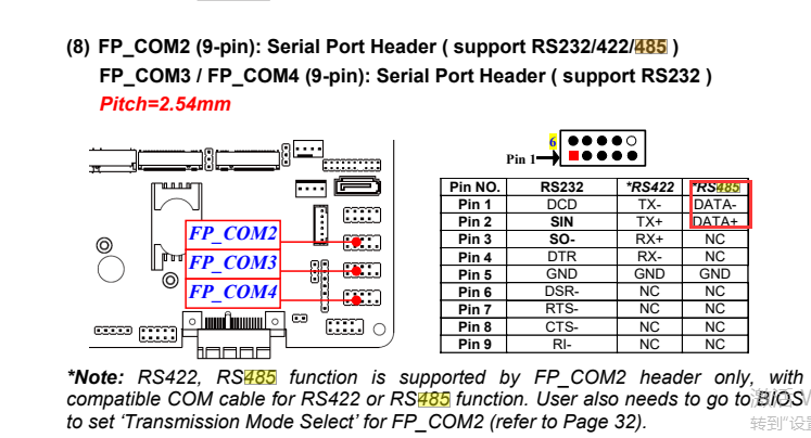以COM2口为例,选择Transmission Mode Select后在该页面选择需要设置的通信方式