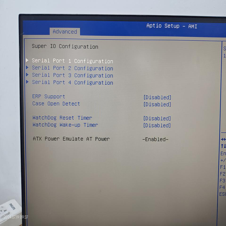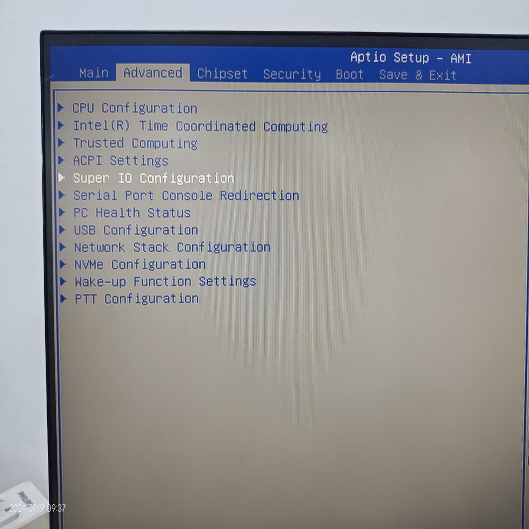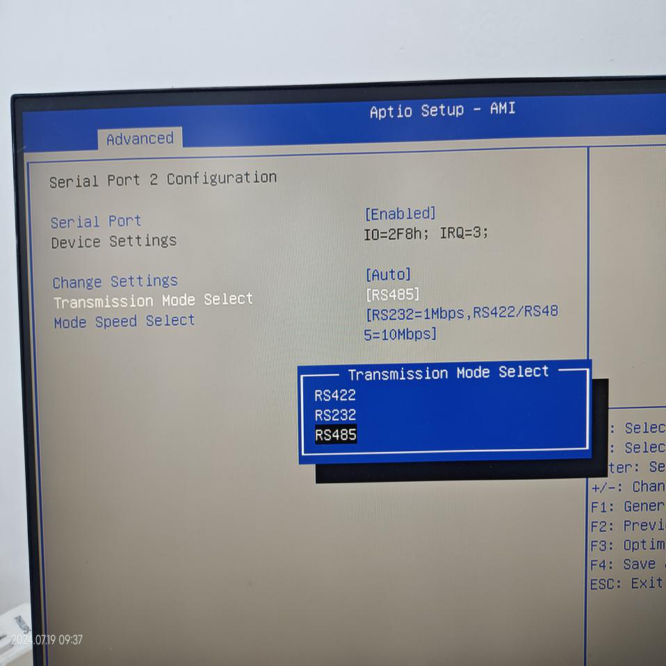2、在工控机的BIOS中设置端口通信方式(开机时重复按delete键进入BIOS)