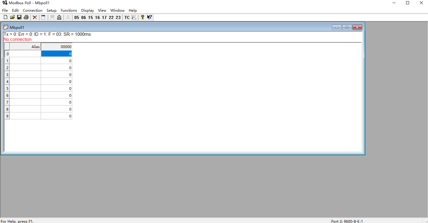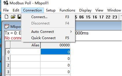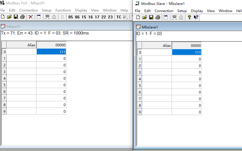 ModbusPoll与ModbusSlave的值能够对应上则测试通过