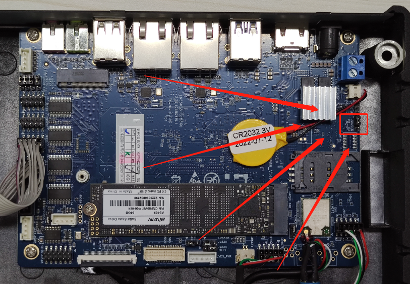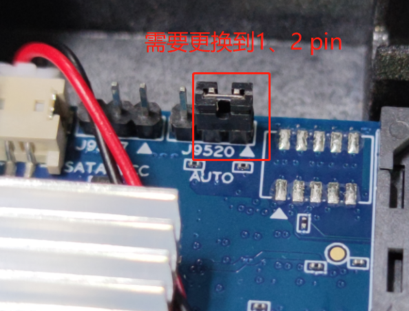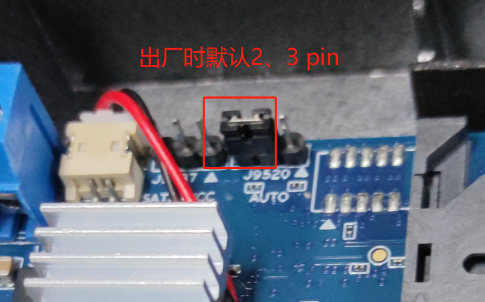 2、找到J9520,出厂默认是接了2、3 PIN,不会上电自动开机,需要更换成1、2 PIN