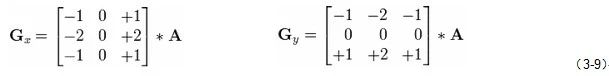 数学上在原图像上应用3×3的掩膜计算水平和垂直两个方向的变化梯度近似值。如果我们定义A为源图像,和分别作为一幅图像的水平近似梯度和垂直近似梯度,计算方式如下: