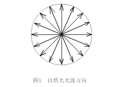 偏振是指横波的振动矢量(垂直于波的传播方向)偏于某些方向的现象,光的偏振现象是由法国工程师马吕斯于1808年发现的。众所周知,自然光是一种电磁波,属于横波,其在垂直于传播方向的平面内包含着一切可能方向的振动,且平均而言在任一方向上都具有相同的振幅,即振动方向是对称的,如图1所示。然而,当光的振动方向对于传播方向不对称性时,便成了偏振光。偏振现象横波区别于其他纵波的一个最明显的标志。