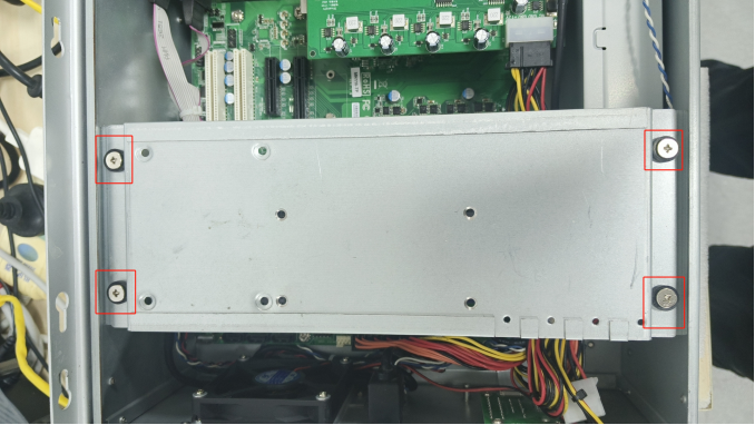 2、将挡板上的四个螺丝拧下,揭开挡板。