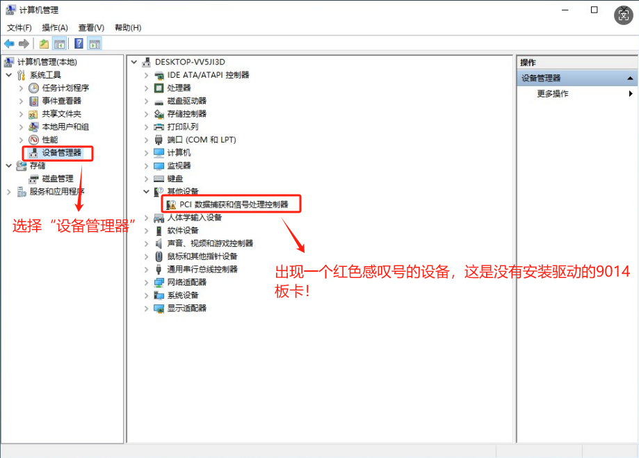 ------>选择“设备管理器”------>出现没有安装驱动的设备