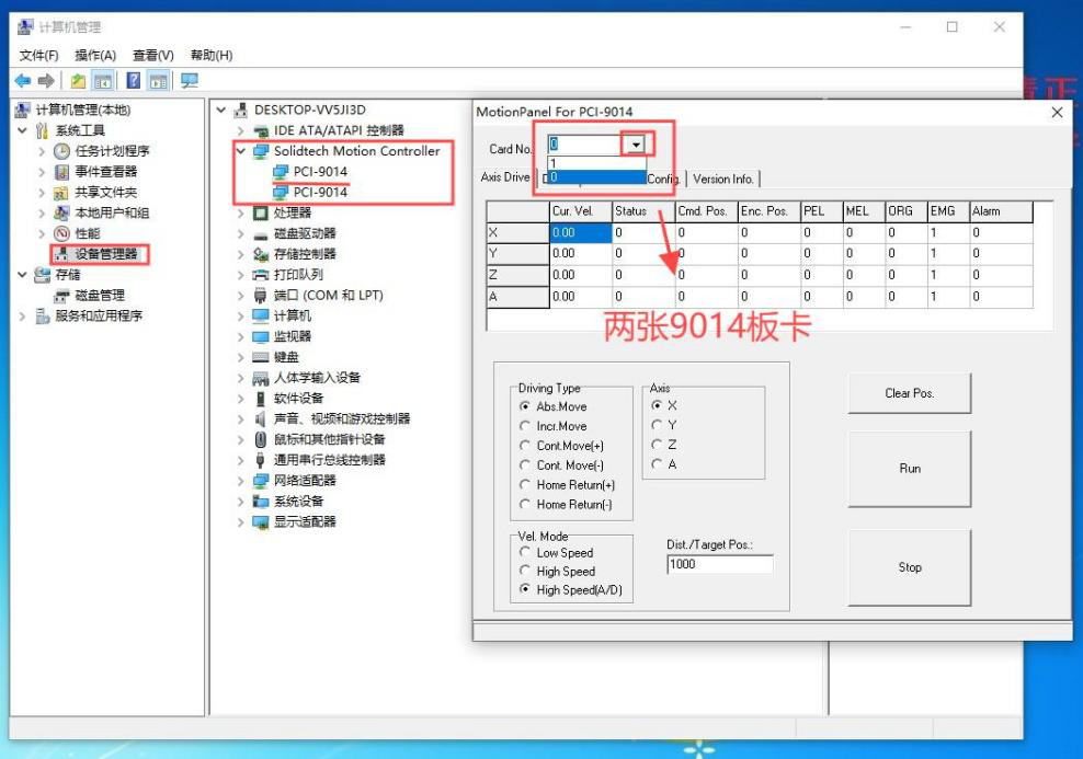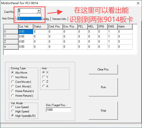 10、也可以去MotionPannel软件中去查看是否安装成功,安装成功可以看到”Card NO”有0,1两个序号程序打开因无报错无弹窗