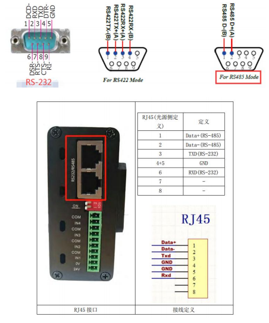 RS232/RS-422/485 定义如下图所示,按照定义接线: