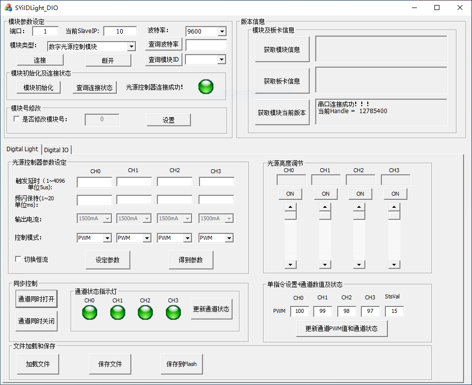3、使用光源控制器 DEMO 软件测试连接是否正常