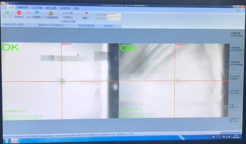 MasterAlign-2C两相机映射对位在工业自动化中应用非常广泛,机构工艺简单易实现,软件操作简单容易上手。此案例中使用软件进行高精度的对位应用,对位精度可达到±0.02mm,而工作中稳定保持对位时间在0.4s内完成。