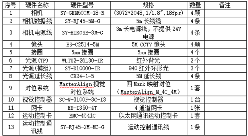 硬件配置清单如下: