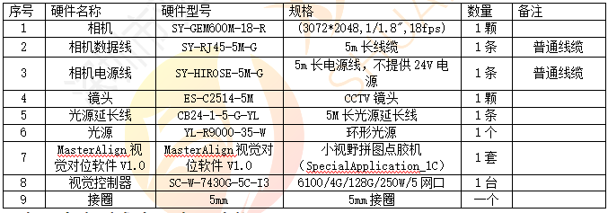 硬件配置清单如下: