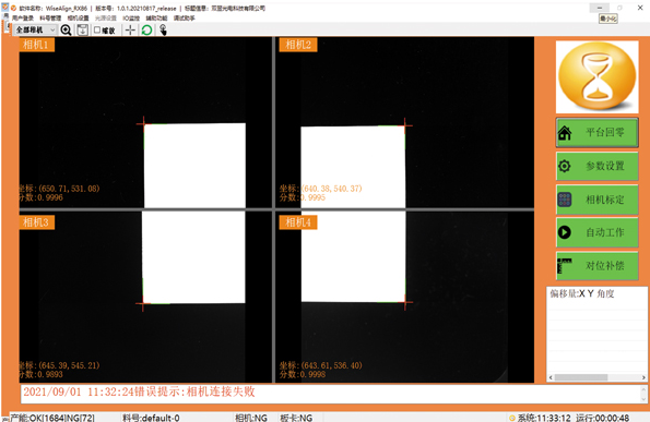 WiseAlign-4C双相机自对位在工业自动化中应用非常广泛,机构工艺简单易实现,软件操作简单容易上手。此案例中用户的模切机使用WiseAlign软件进行高精度的对位生产应用,在对位时候其精度可达±0.02mm,而对位时间在0.4s内完成。