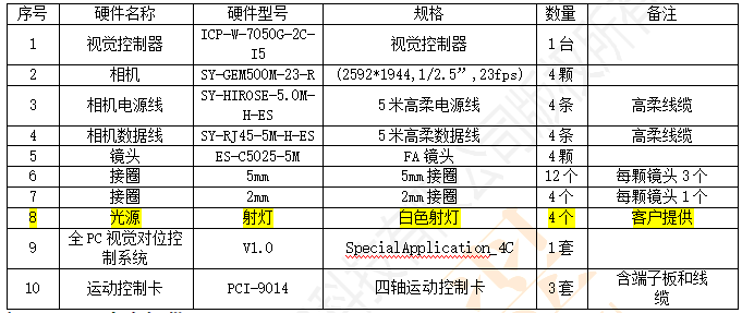 硬件配置清单如下: