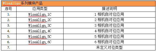下表为WiseAlign视觉对位软件的详细应用类型说明: