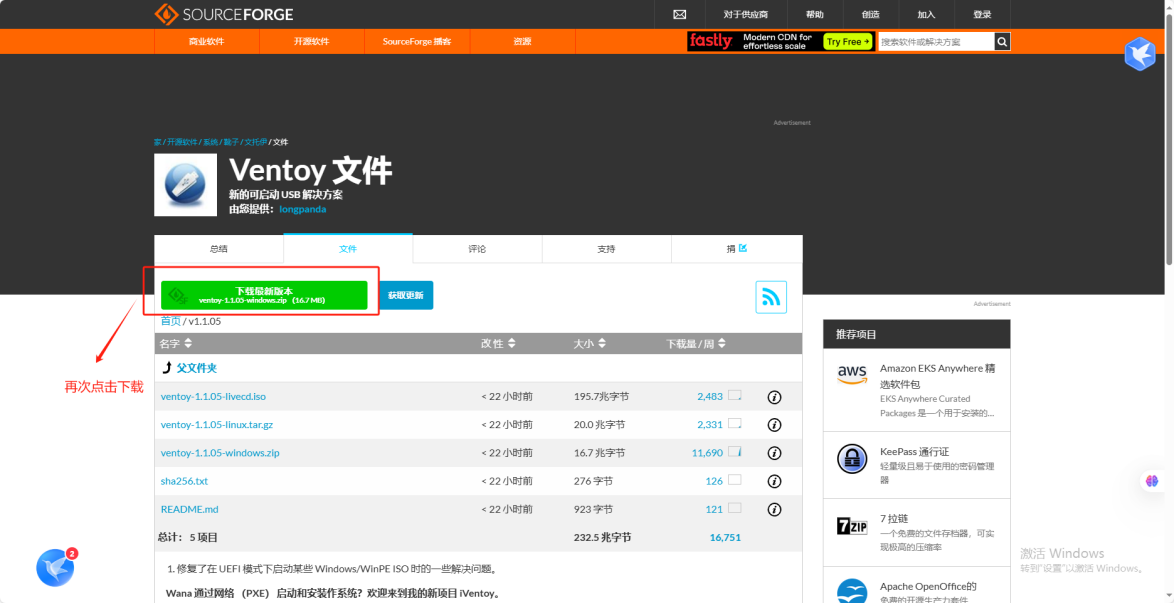 点击“Download.Ventoy”进入Ventoy下载页面,并选择Windows版下载