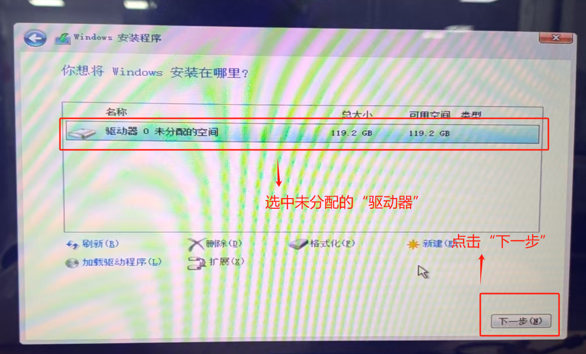 选中“驱动器0分区1:系统”,点击“删除”,点击“下一步”