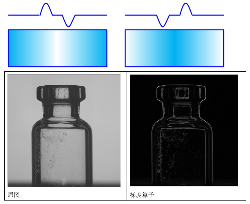 对于左图,左侧的边是正的(由暗到亮),右侧的边是负的(由亮到暗)。对于右图,结论相反。常数部分为零。用来检测边是否存在。