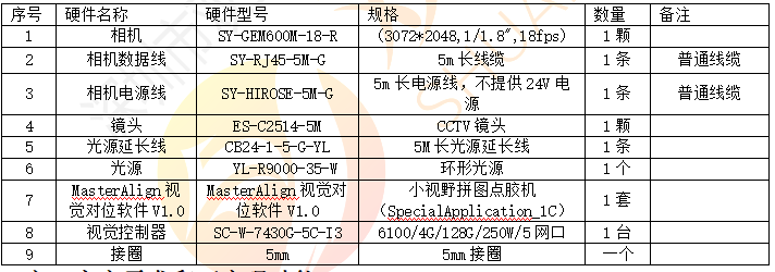 硬件配置清单如下: