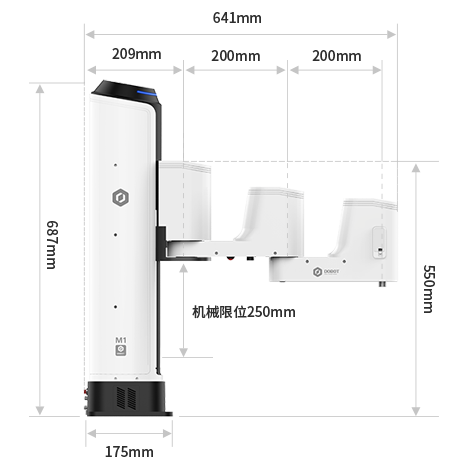 无独有偶,越疆的M1系列,也是采用了相同的构型,不同的是越疆的手臂更粗壮一些,不可折叠,意味在狭小的空间里操作将会有所限制。