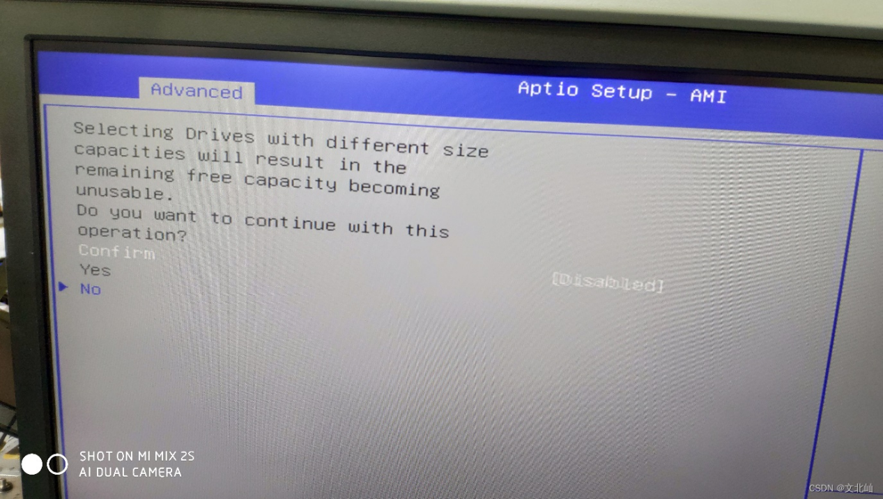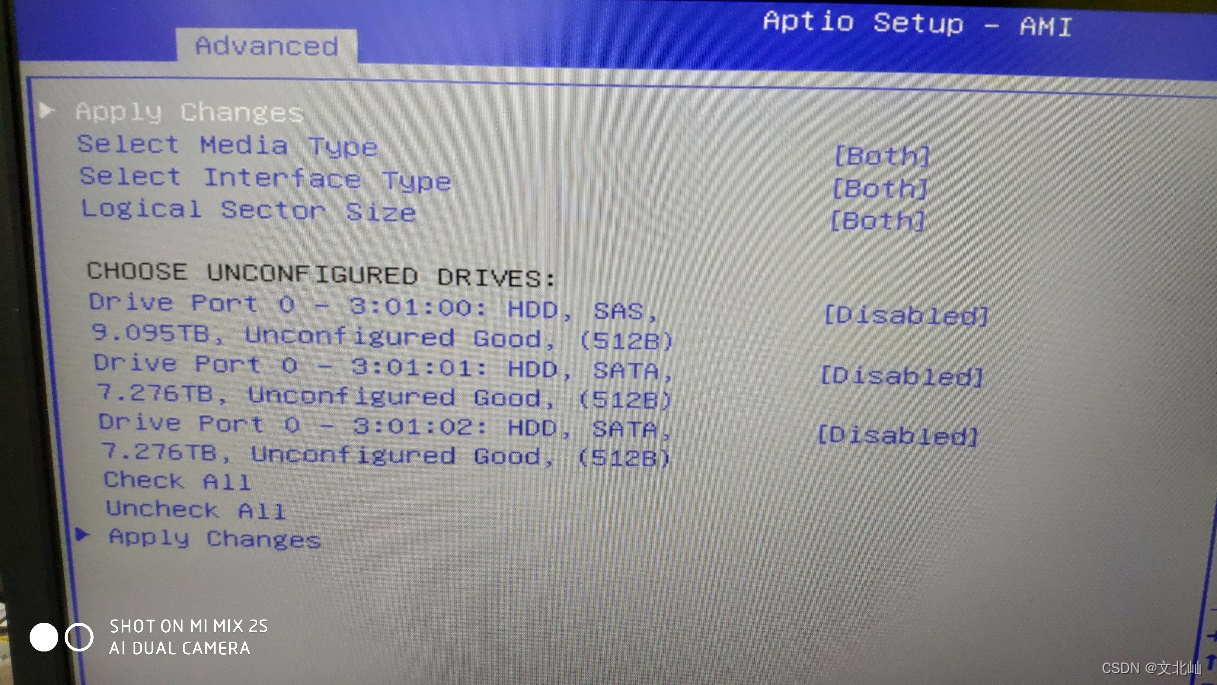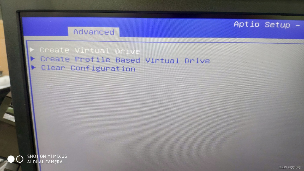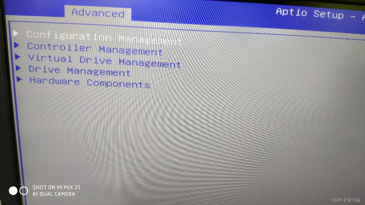首先将设备都准备好后,开机进入BIOS下,找到Advanced下的阵列卡信息