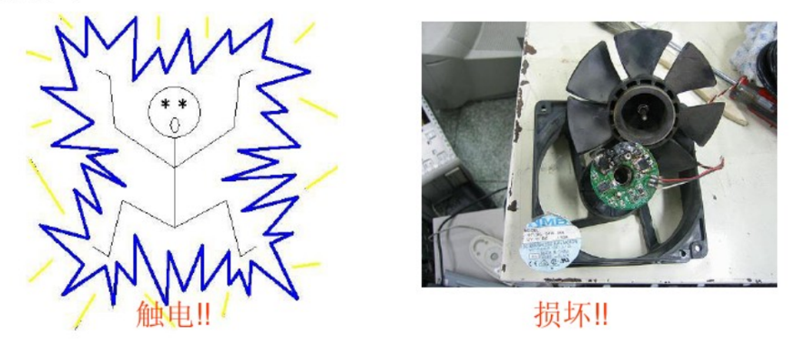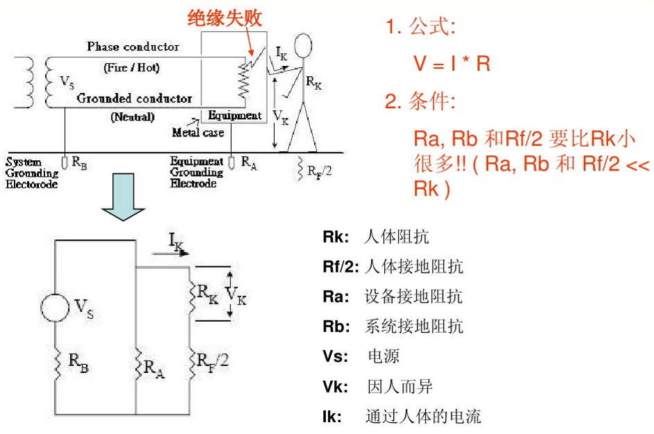 事件2:设备的金属部分没有接地,若人已接地,则会触电。