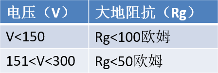 1.1 如表格所示,电压与大地阻抗应符合以下条件
