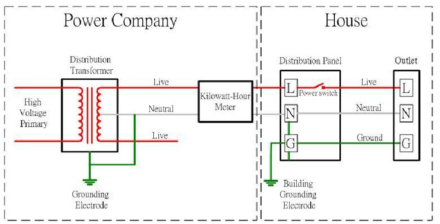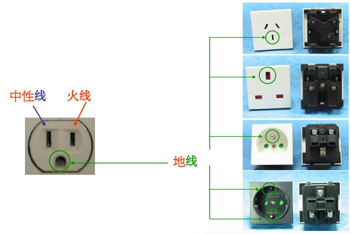 2.1 一个普通的电源插座应包括火线连接,中性线(零线)连接以及接地连接。