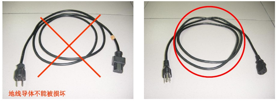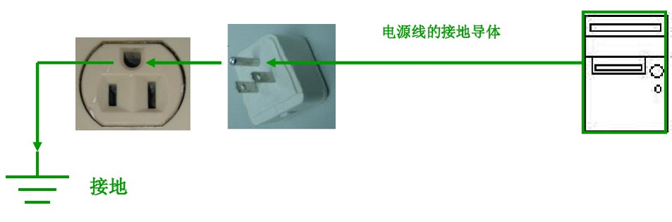 3.2将地线一段插入电源插座的接地连接装置,另一端插入设备无遮掩的相应金属部分。