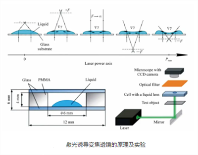 电化学活化技术通过氧化还原反应改变表面活性剂浓度,从而调控液态表面张力。这种技术实现了完全无机械驱动的调焦方式,但该类镜头的焦距调节响应时间较长,且变化规律难以定量分析。