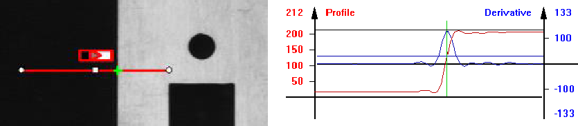 形状的拟合,首先是通过在设定的方向上寻找出边缘点,再进行相关形状的拟合的。测量参数全部都是针对每一条路径上的像素曲线变化率进行操作的。