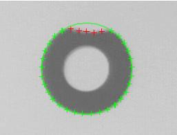 差异点是远离有效点集合的点,它的出现会影响形状(直线、圆、矩形)的逼近程度,需要将其剔除。下图所示为剔除圆上的差异点: