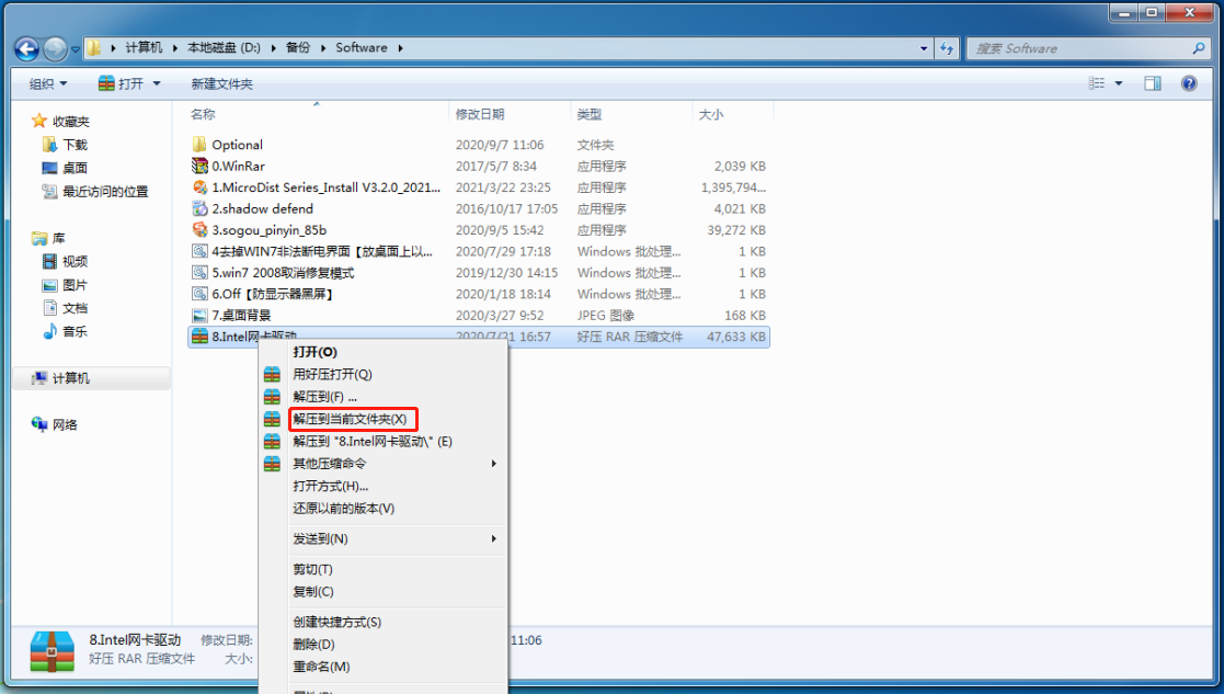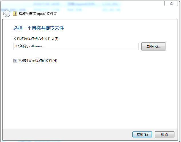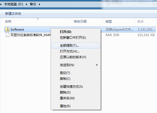 右键单击Software.zip,选择“全部提取(T)...”,弹出的对话框点击“提取”。