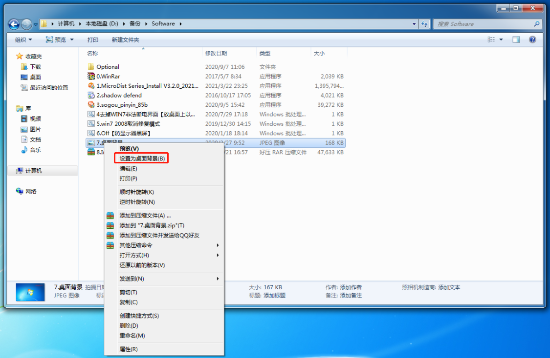 右键单击文件“7.桌面背景.jpg”。点击“设置为桌面背景”。