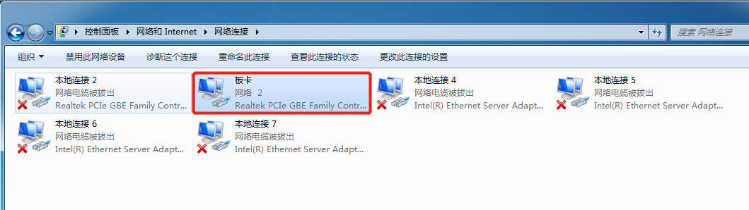 →将有网络的网线插入运动控制卡网口,将对应的网络名称修改为“运动控制卡”