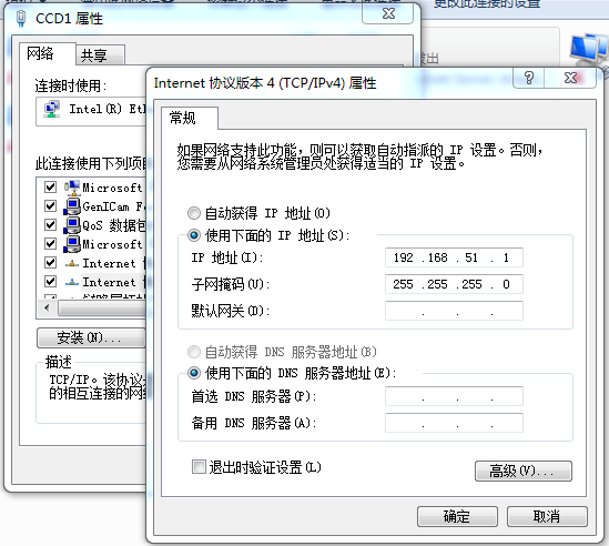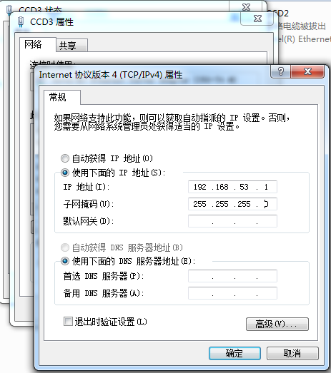→右键点开“CCD0”的网络属性,修改相机的IP地址如下