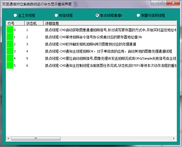 D. 抓点线程:相机抓点线程状态指示,一个相机为一个显示框显示。