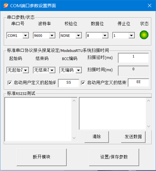 G. 标准串口协议通讯端口设置界面: