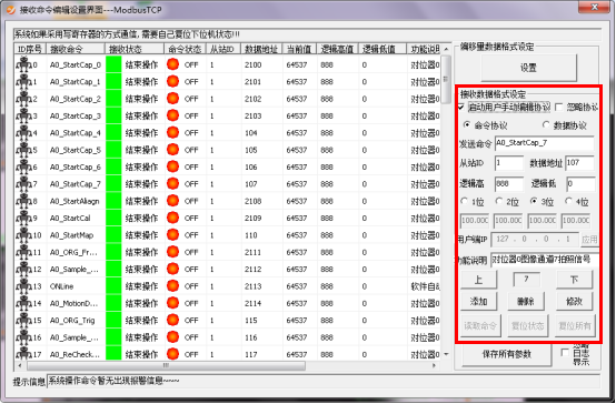 在“通信设置”->点击“接收命令”,弹出接收命令设置界面,如图