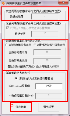 O. 保存参数:设置完参数后点击该按钮进行保存参数。