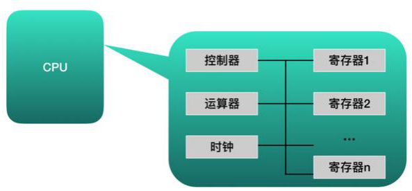 从功能来看,CPU 的内部由寄存器、控制器、运算器和时钟四部分组成,各部分之间通过电信号连通。