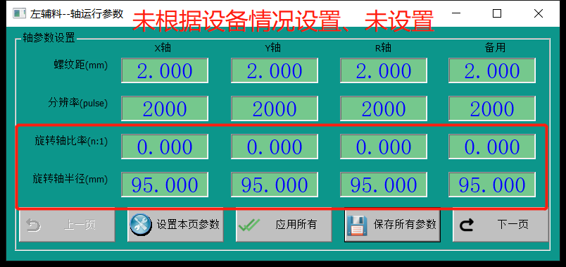 2:MasterAlign软件“通讯设置-平台参数“里的轴参数未进行确认设置,均是默认值。根据设备情况正确的设置如下图:
