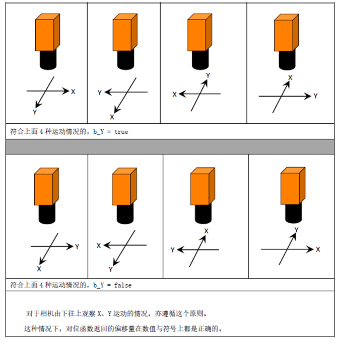 Y轴和相机Y方向的关系:运动Y轴正方向在运动X轴正方向的顺时针90度处,为true, 否则为false!