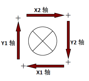 同样地,对于四轴的 XXYY平台,我们规定四轴的正方向为使得平台顺时针方向旋转的方向,如下图所示:
