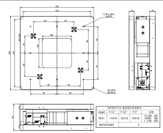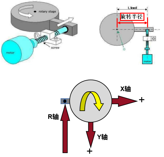XY轴为常规模组,旋转轴为丝杆侧推方式带动平台旋转。