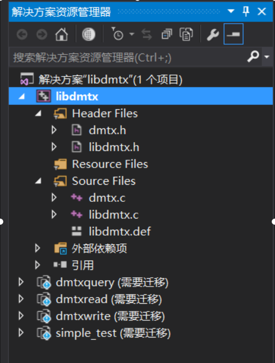 1、将libdmtx-libdmtx-0.7.4\project\visualc9\x64\Debug下的libdmtx.lib和libdmtx.dll文件,以及0.7.4文件夹下的dmtx.h文件一同拷出备用。