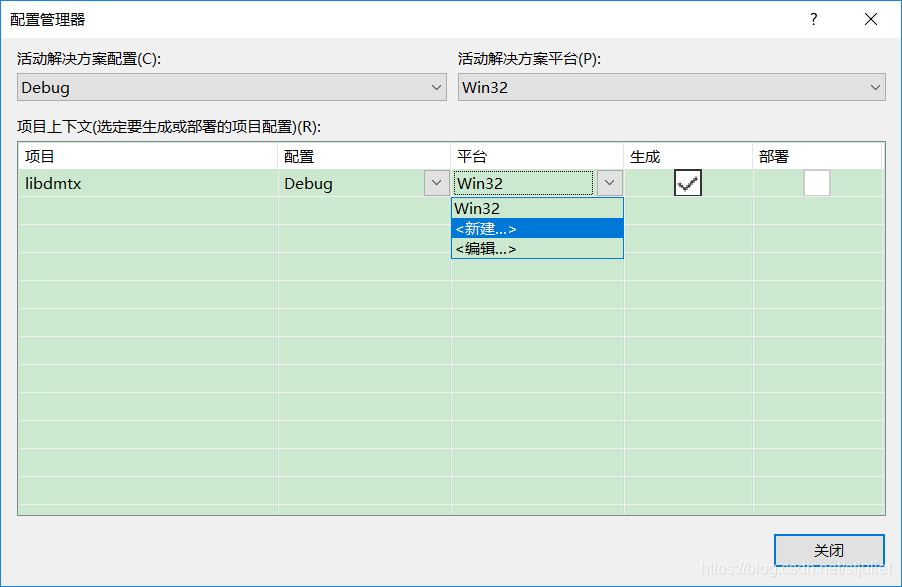 5、默认生成的是32位的lib和dll,如果要生成64位的,需要配置管理器。