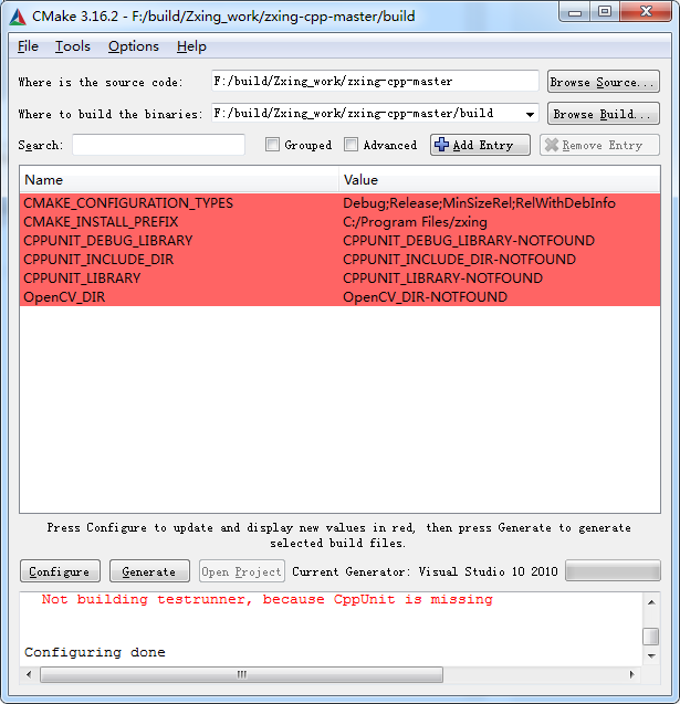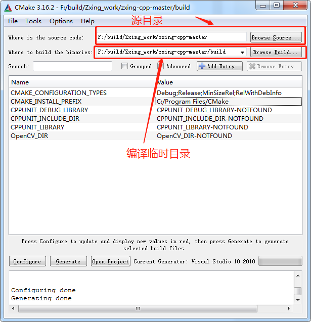 点击“Generate” 然后cmake自动生成VS工程。如下状态显示 Generate Done