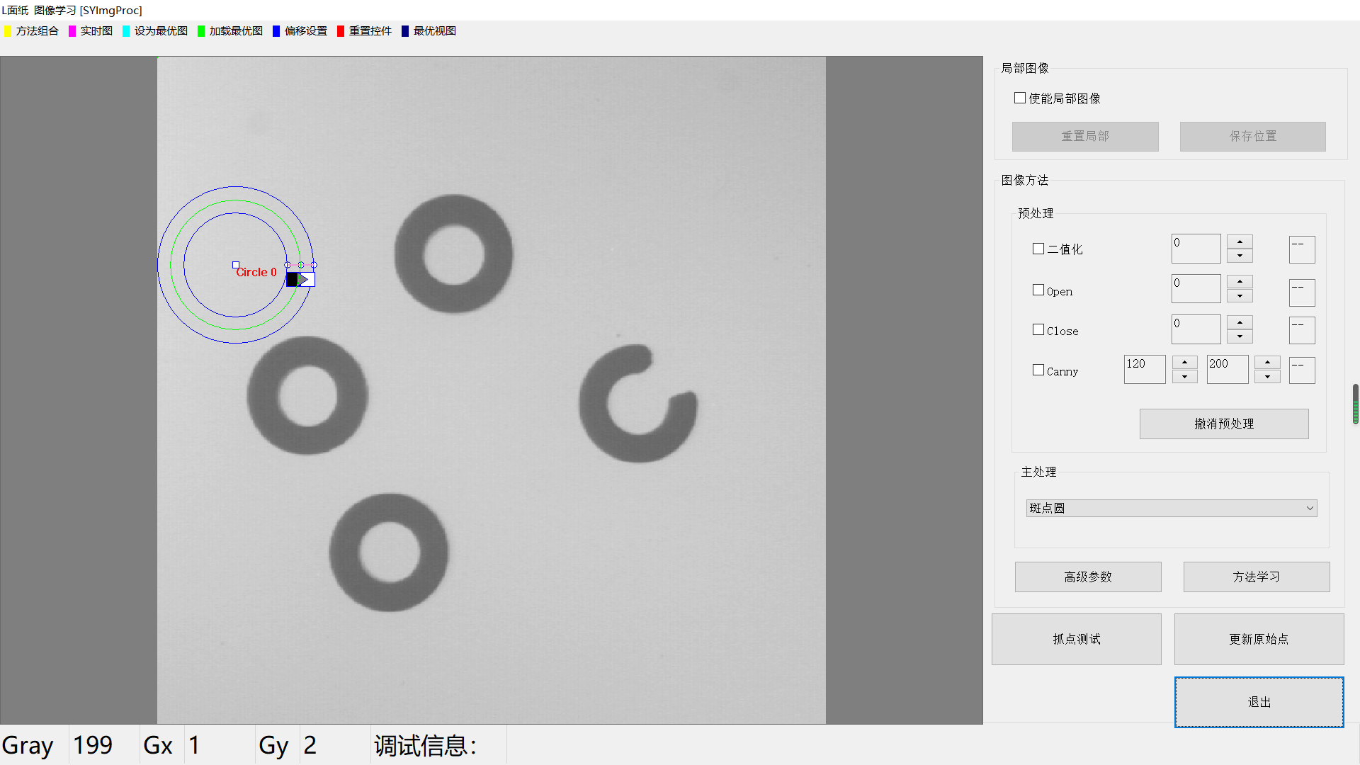 点击【方法学习】后,斑点圆方法的所有信息将被保存,并自动进行图像处理,相关的信息将显示。