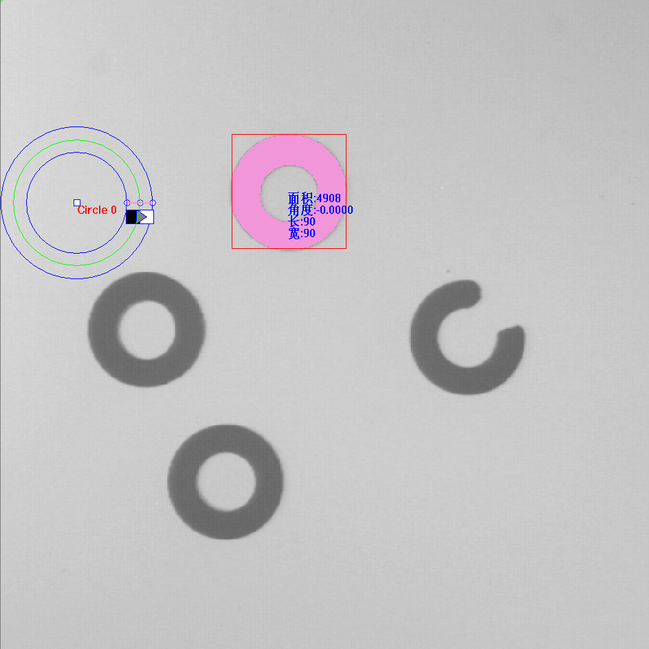 该方法首先进行斑点分析,找到符合条件的圆形斑点,再使用圆工具对圆形斑点进行几何特征分析。